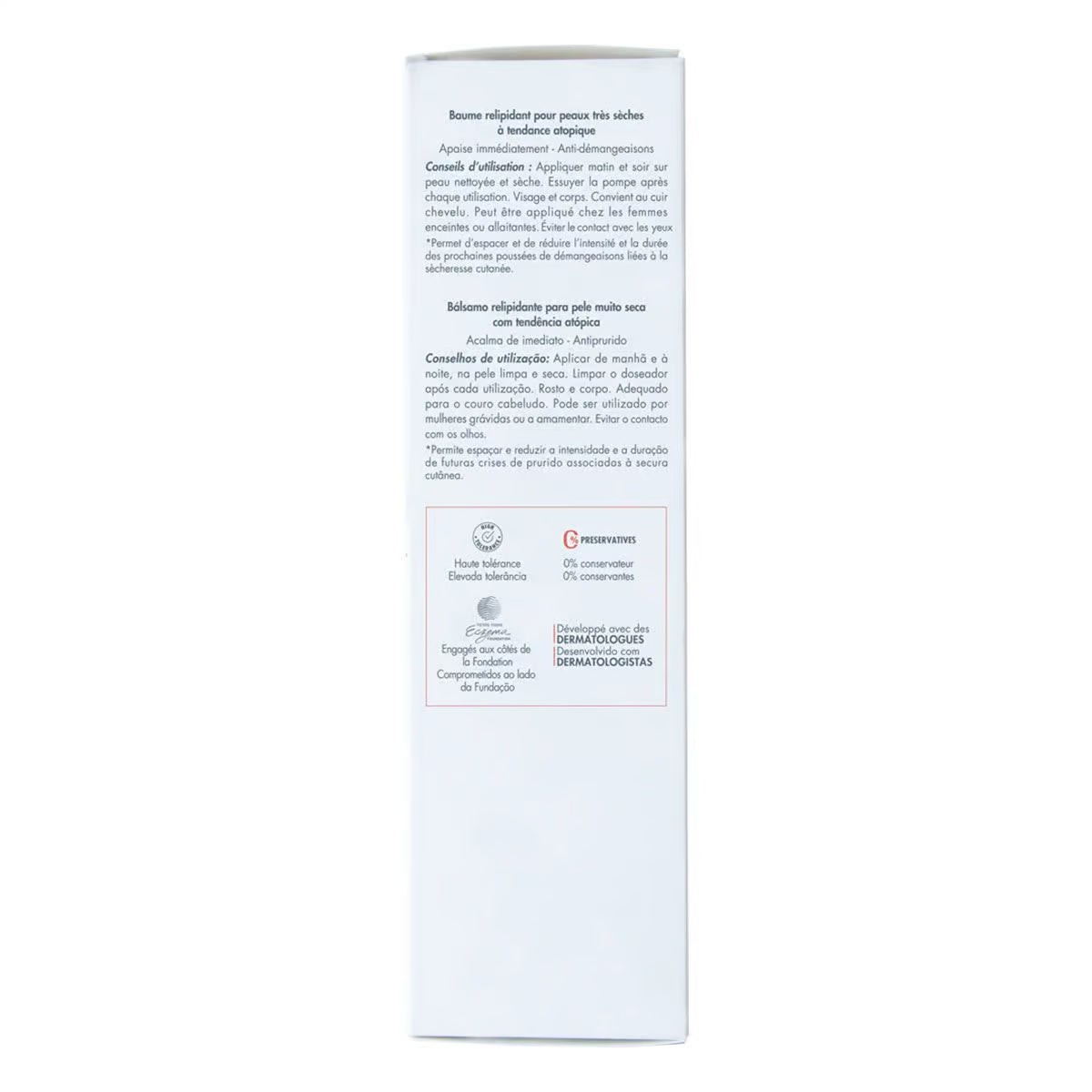 Bálsamo relipidizante formulado para el cuidado de piel muy seca, sensible o con tendencia atópica. Ayuda a nutrir intensamente la piel, aliviar la sensación de picor causada por la resequedad y reforzar la barrera cutánea para mayor confort.