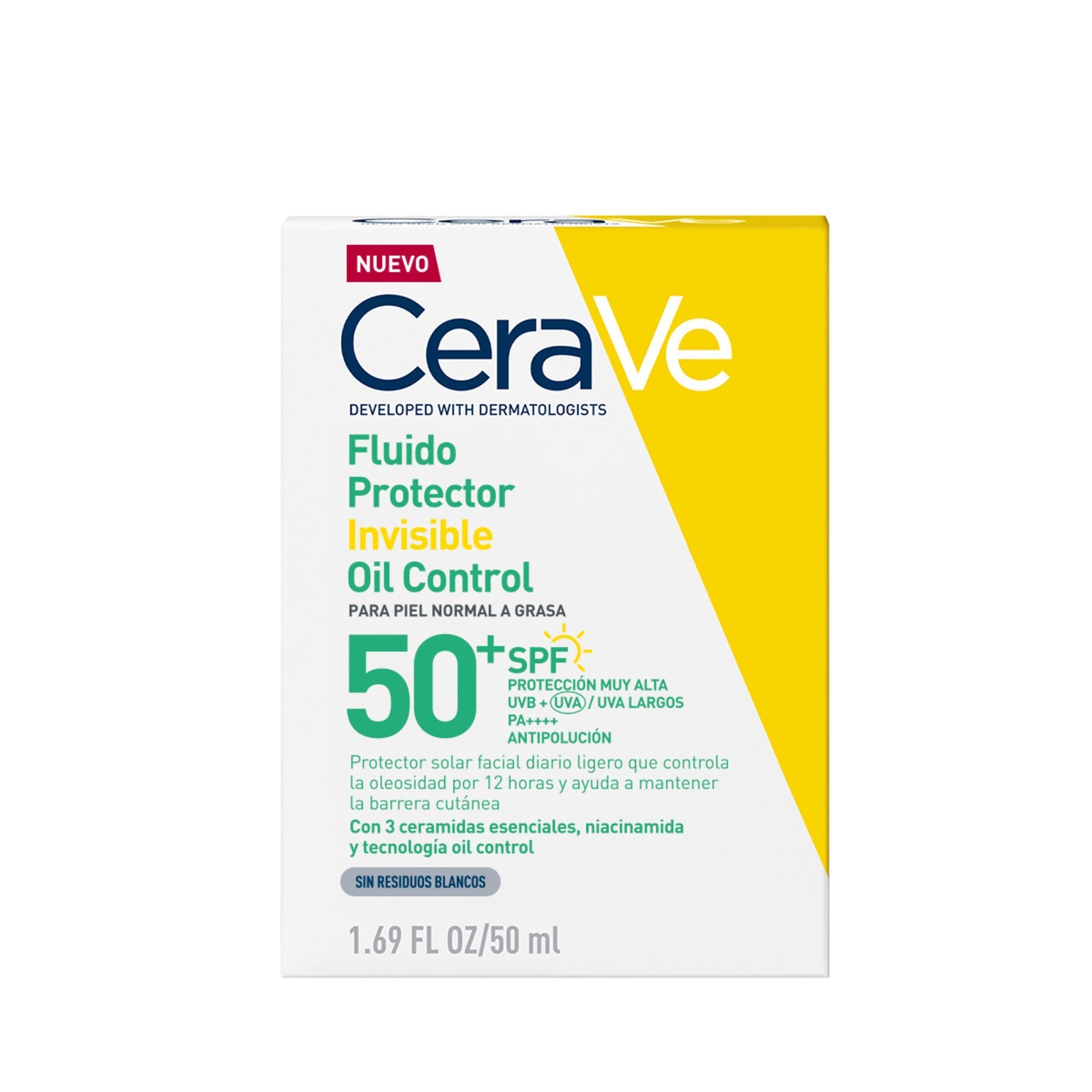 Protector solar facial SPF50 diseñado para piel mixta a grasa que ayuda a controlar el exceso de sebo mientras brinda alta protección contra rayos UVA y UVB. Su acabado invisible y mate lo hace ideal para uso diario.