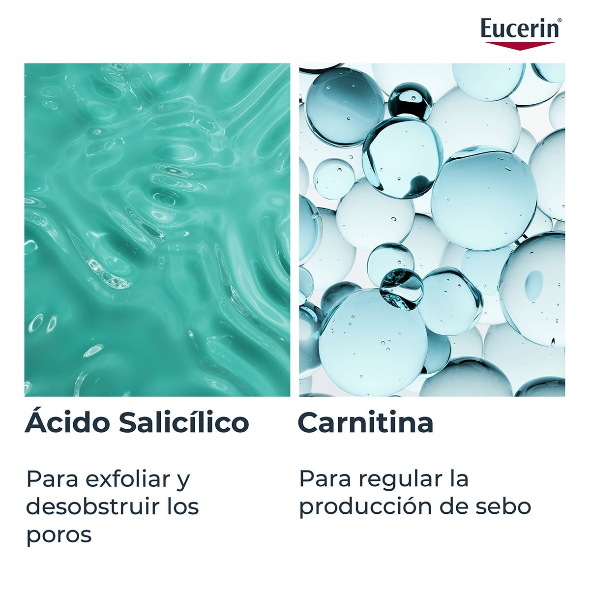 Ácido salicílico (exfoliante y ayuda a desobstruir poros) y L-Carnitina (regula la producción de sebo)