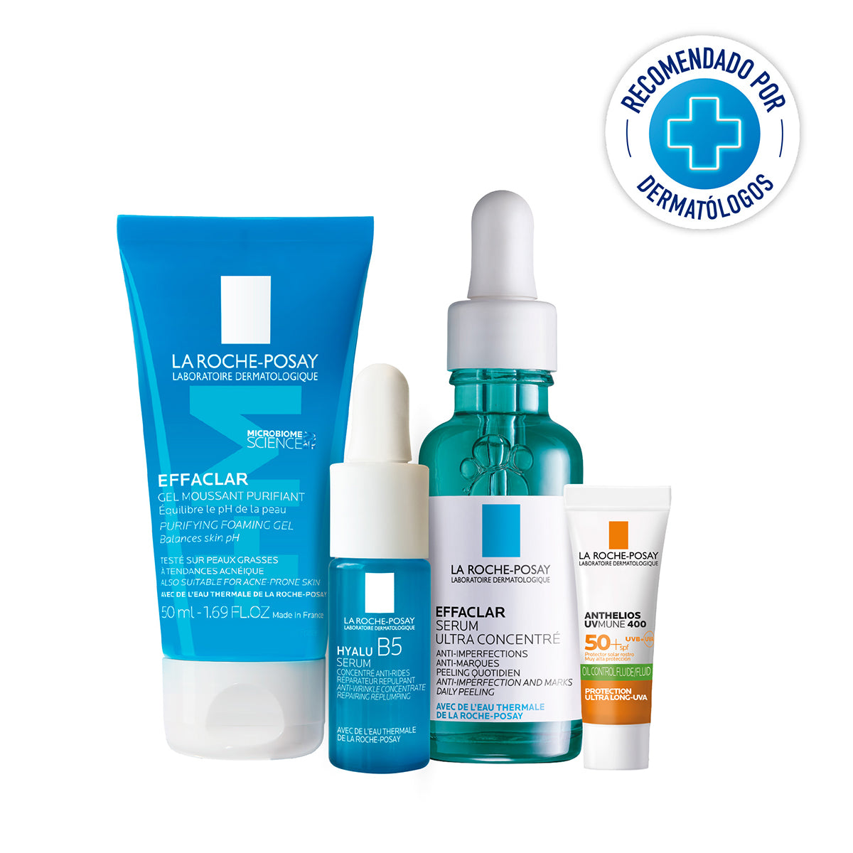 Kit La Roche-Posay Effaclar Sérum Ultra Concentrado 30ml. + Effaclar Gel 50ml. + Hyalu B5 Sérum 10ml. + Anthelios UV Mune 400 FPS50 + Oil Control Fluido 3ml.