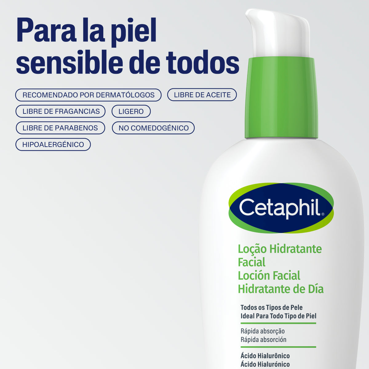 Hidrata al instante protegiéndote durante todo el día. Formulado con ácido hialurónico, glicerina y una combinación de poderosos agentes hidratantes, ideal para todo tipo de piel. Textura ligera, libre de aceites y de rápida absorción. No comedogénico, hipoalergénico. Dermatológicamente probado