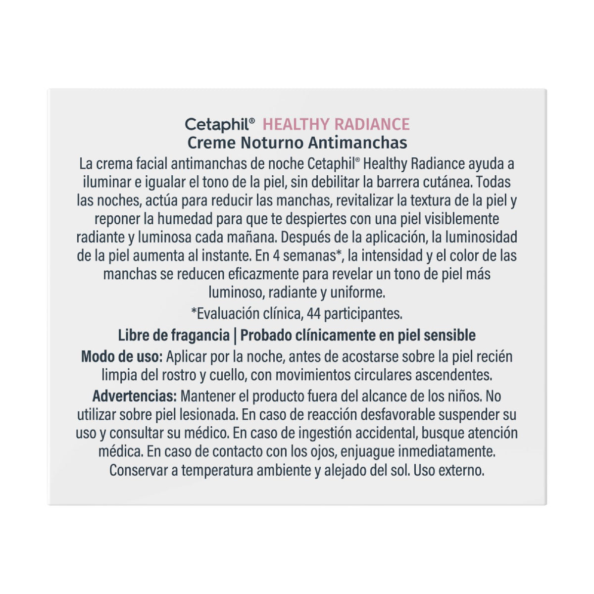 Crema nocturna antimanchas que actúa durante la noche para reducir la apariencia de manchas oscuras, mejorar la luminosidad y promover un tono de piel uniforme mientras hidrata intensamente