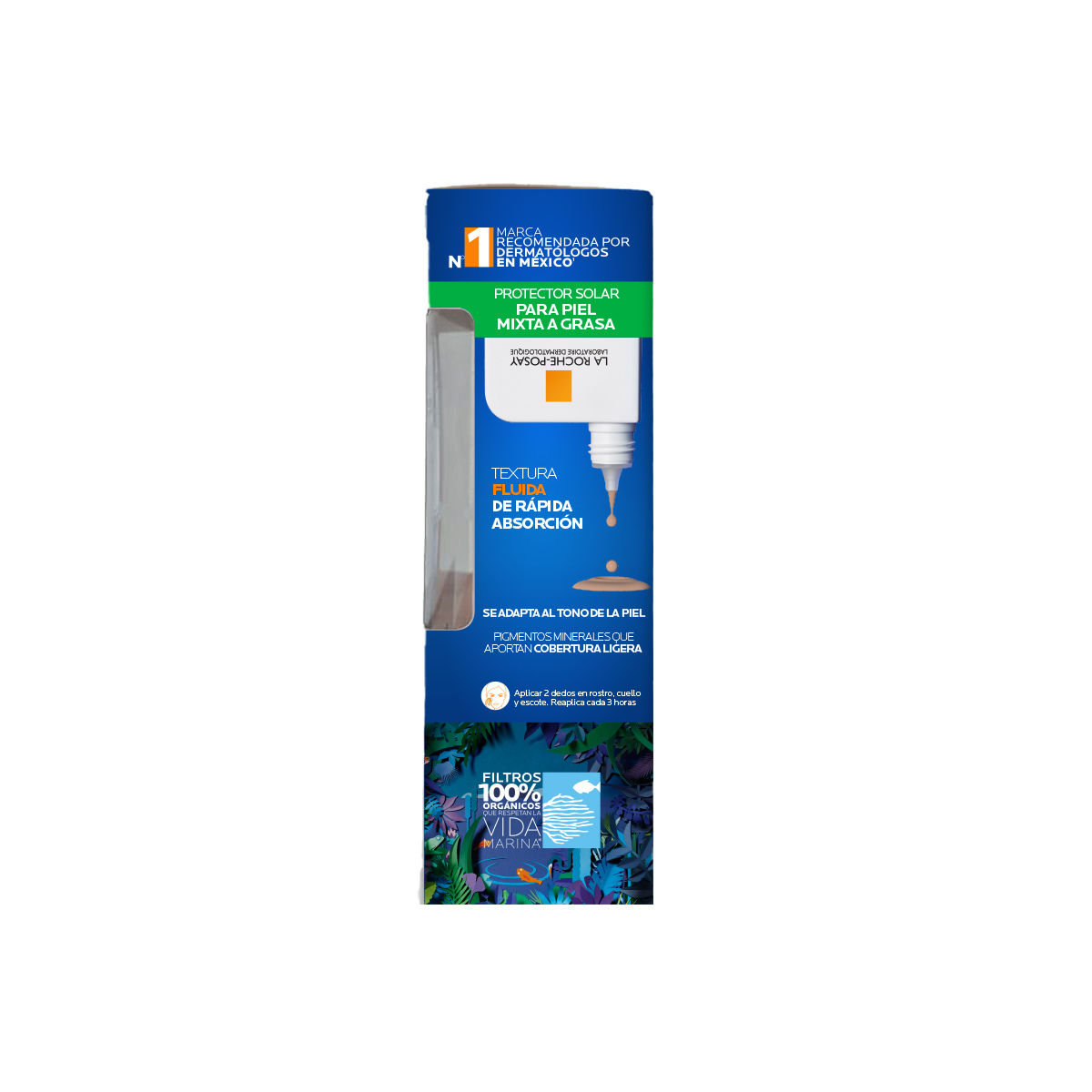 3. Anthelios UVMune 400 Oil Control Fluido con Color: aplicar como último paso por la mañana antes de la exposición solar; reaplicar el protector conforme necesario, especialmente después de sudar o contacto con agua