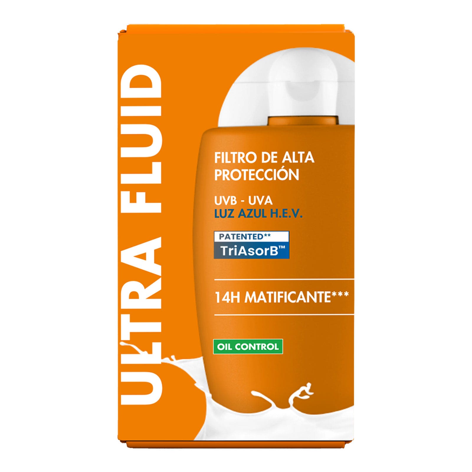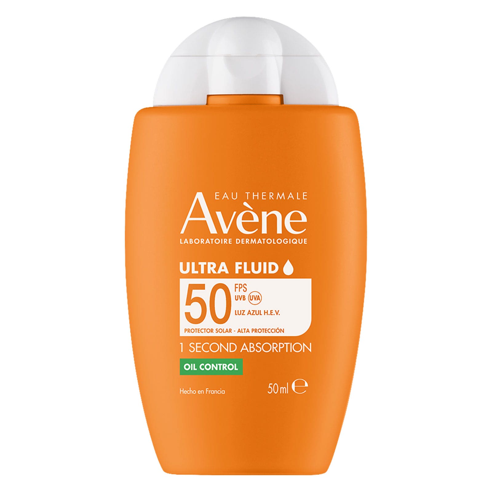 Protector solar facial ultrafluido con alta protección FPS50 que ayuda a controlar el brillo y proteger la piel contra los rayos UVA y UVB, con acabado invisible y sensación ligera